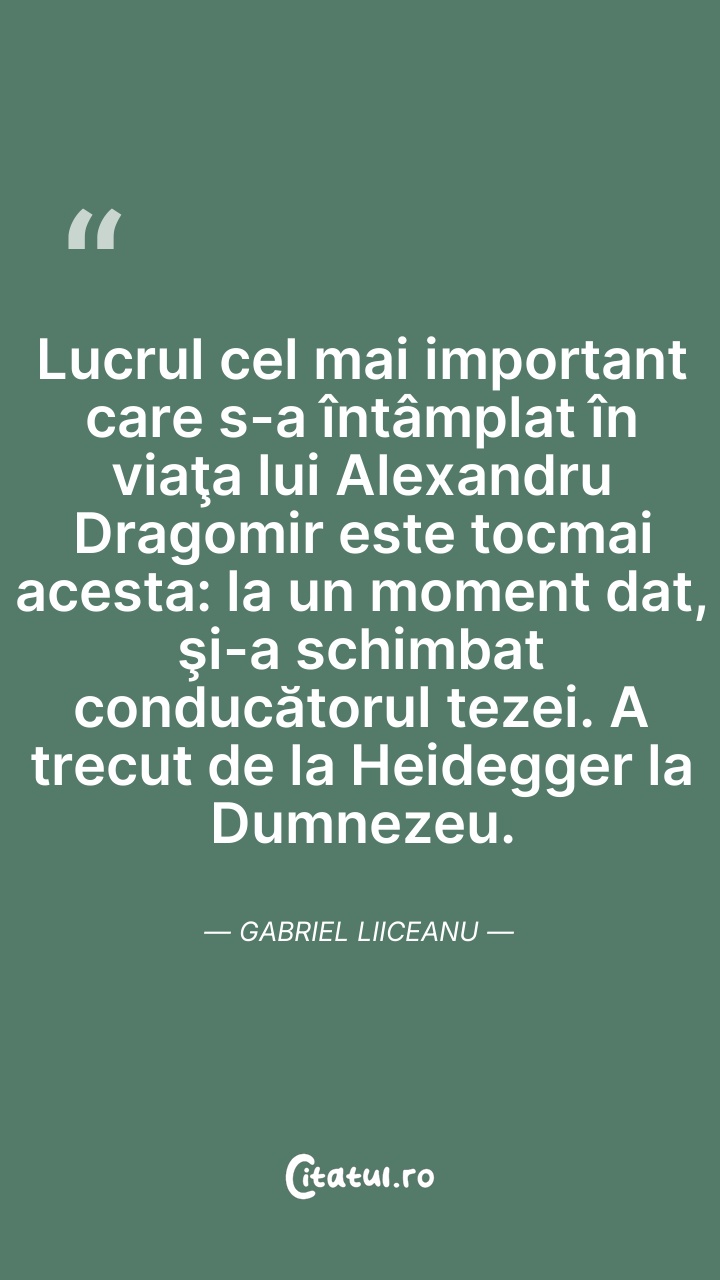 Gabriel Liiceanu este un filozof, interpret și scriitor român. Discipol al filozofului Constantin Noica, în perioada comunistă s-a făcut remarcat ca interpret al filozofului german Martin Heidegger. Din 1990 este directorul Editurii Humanitas, una dintre cele mai importante instituții culturale române, proiect formulat în anii Școlii de la Păltiniș.
