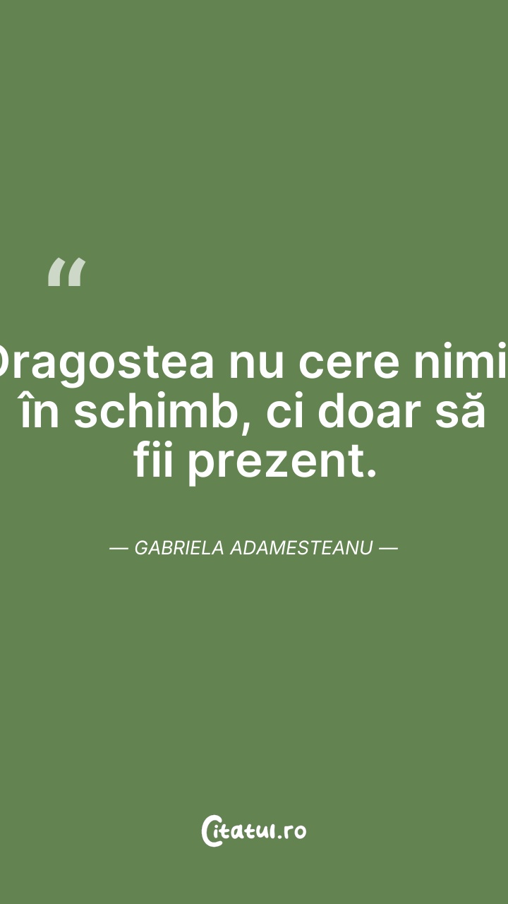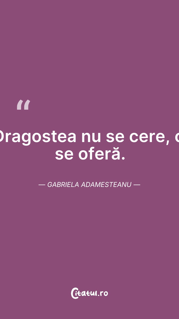 Dragostea nu se cere, ci se oferă. Gabriela A ... Citește tot citatul >