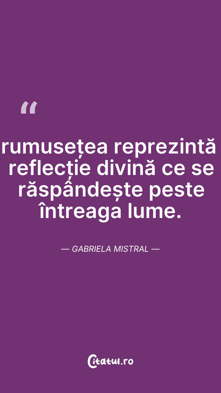Frumusețea reprezintă o reflecție divină ce s ... Citește tot citatul >