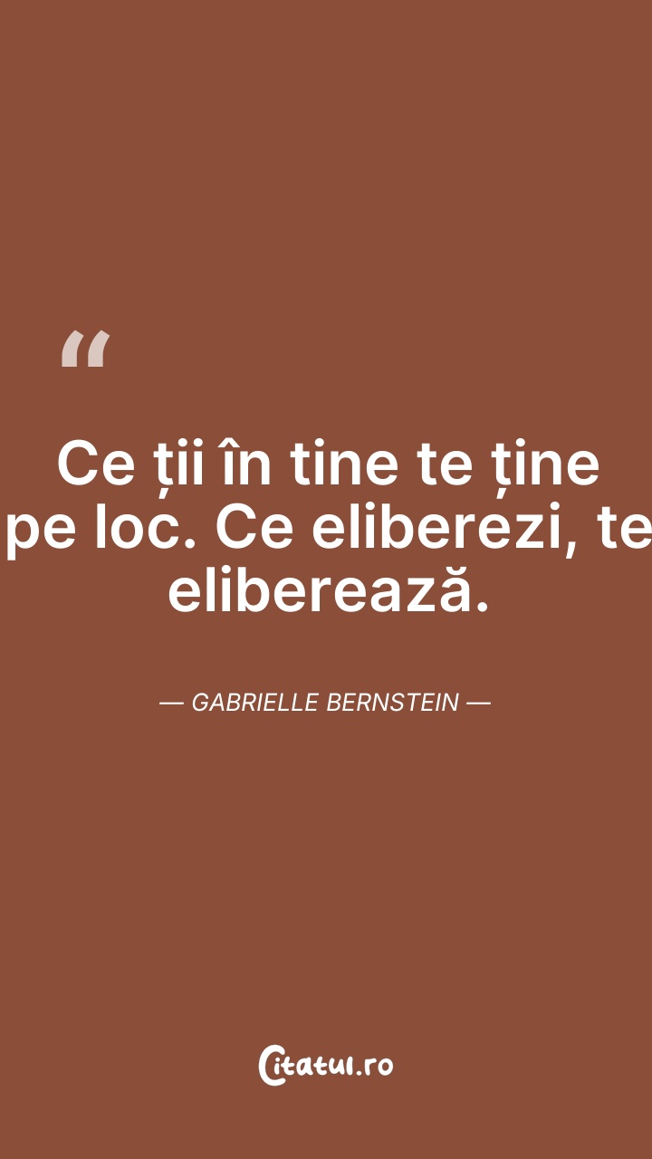 Ce ții în tine te ține pe loc. Ce eliberezi, ... Citește tot citatul >