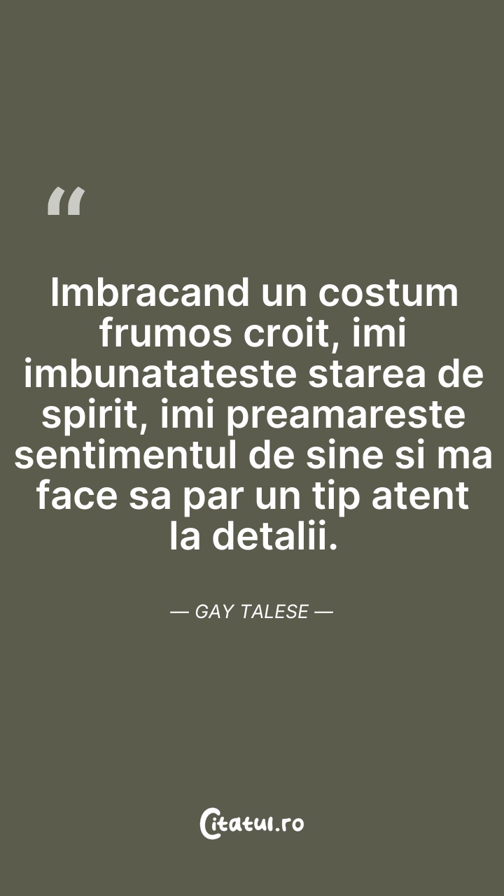 Imbracand un costum frumos croit, imi imbunat ... Citește tot citatul >