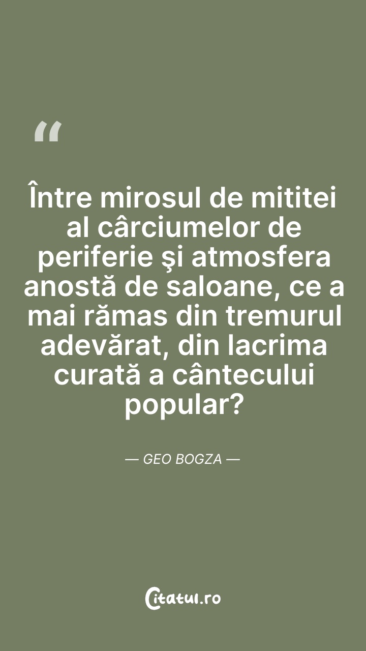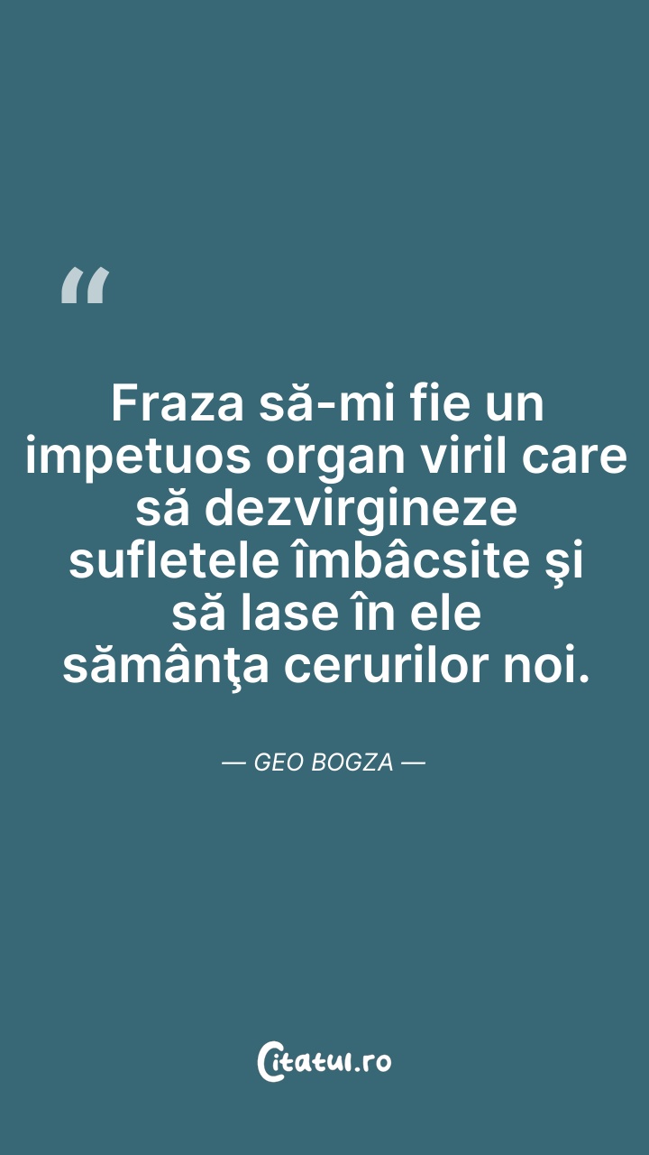 Geo Bogza a fost un scriitor, jurnalist și poet român, teoretician al avangardei, asociat cu nașterea mișcării suprarealiste din România, fratele muzicianului Alexandru Bogza și al scriitorului Radu Tudoran.