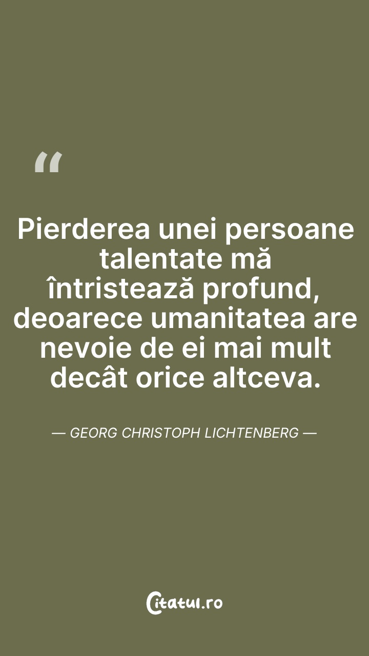 Pierderea unei persoane talentate mă întriste ... Citește tot citatul >