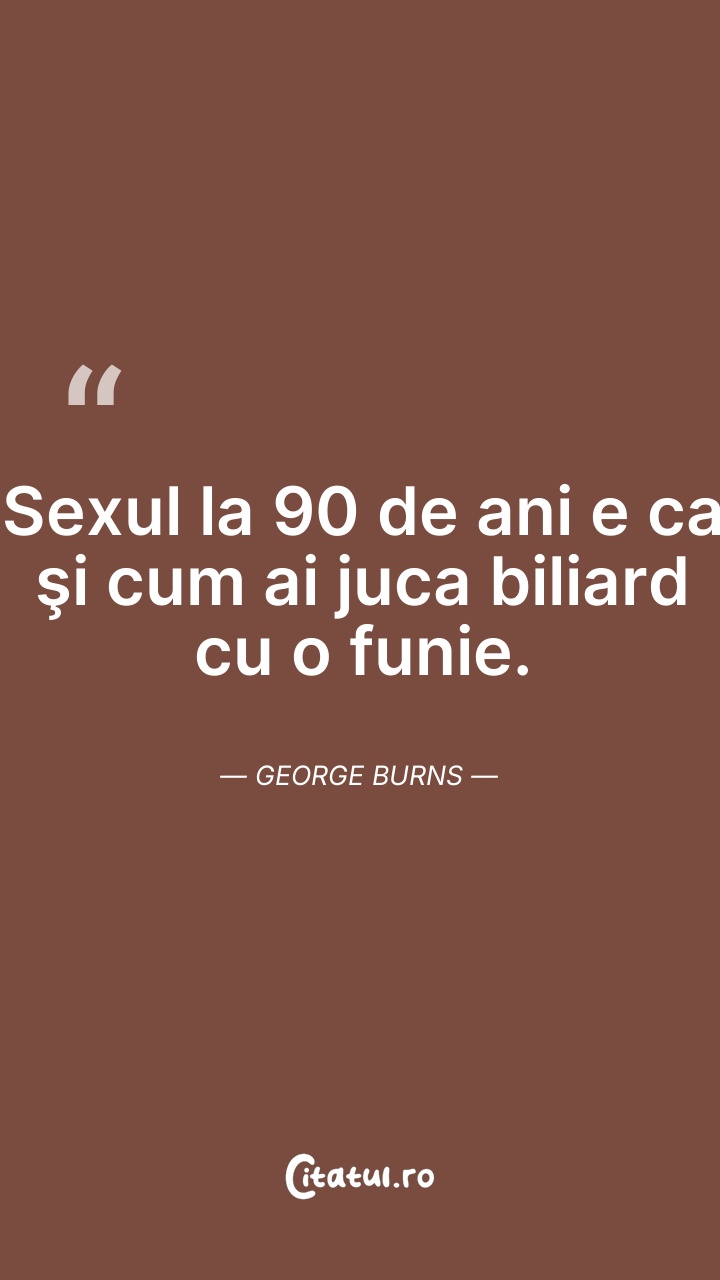 Sexul la 90 de ani e ca şi cum ai juca biliar ... Citește tot citatul >