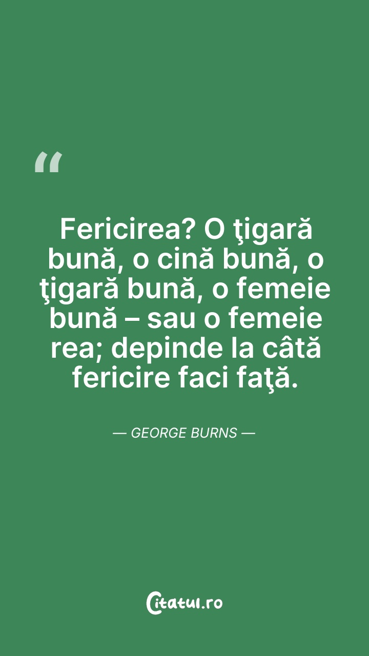 Fericirea? O ţigară bună, o cină bună, o ţiga ... Citește tot citatul >