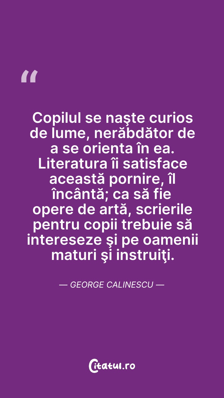 George Călinescu a fost critic, istoric literar, scriitor, publicist, personalitate enciclopedică a culturii și literaturii române, de orientare, după unii critici, clasicizantă, după alții doar italienizantă sau umanistă. Este considerat drept unul dintre cei mai importanți critici literari români din toate timpurile, alături de Titu Maiorescu și Eugen Lovinescu. Și-a semnat articolele ca G. Călinescu, după o modă destul de răspândită în perioada interbelică. Prenumele lui adevărat, în actele de stare civilă, era Gheorghe; în ultimele decenii, se folosește preponderent denumirea „George Călinescu”, cu care și-a semnat majoritatea lucrărilor publicate, denumire consacrată de uz. Membru titular al Academiei Române din 1948.