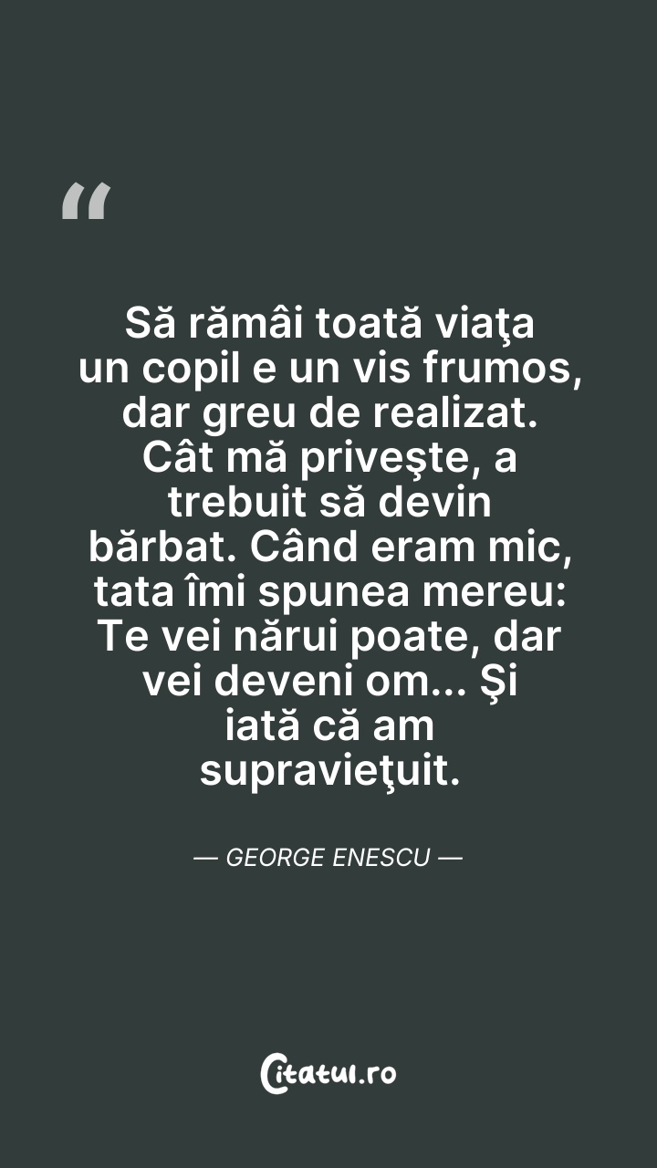 Să rămâi toată viaţa un copil e un vis frumos ... Citește tot citatul >
