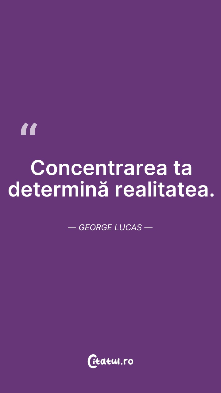 Concentrarea ta determină realitatea. George ... Citește tot citatul >