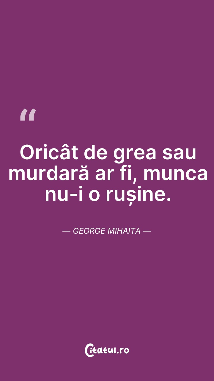 Oricât de grea sau murdară ar fi, munca nu-i ... Citește tot citatul >