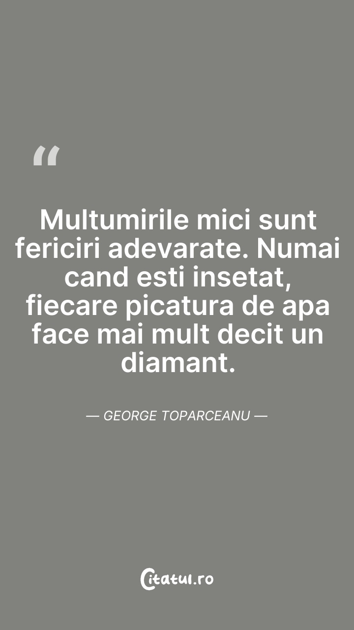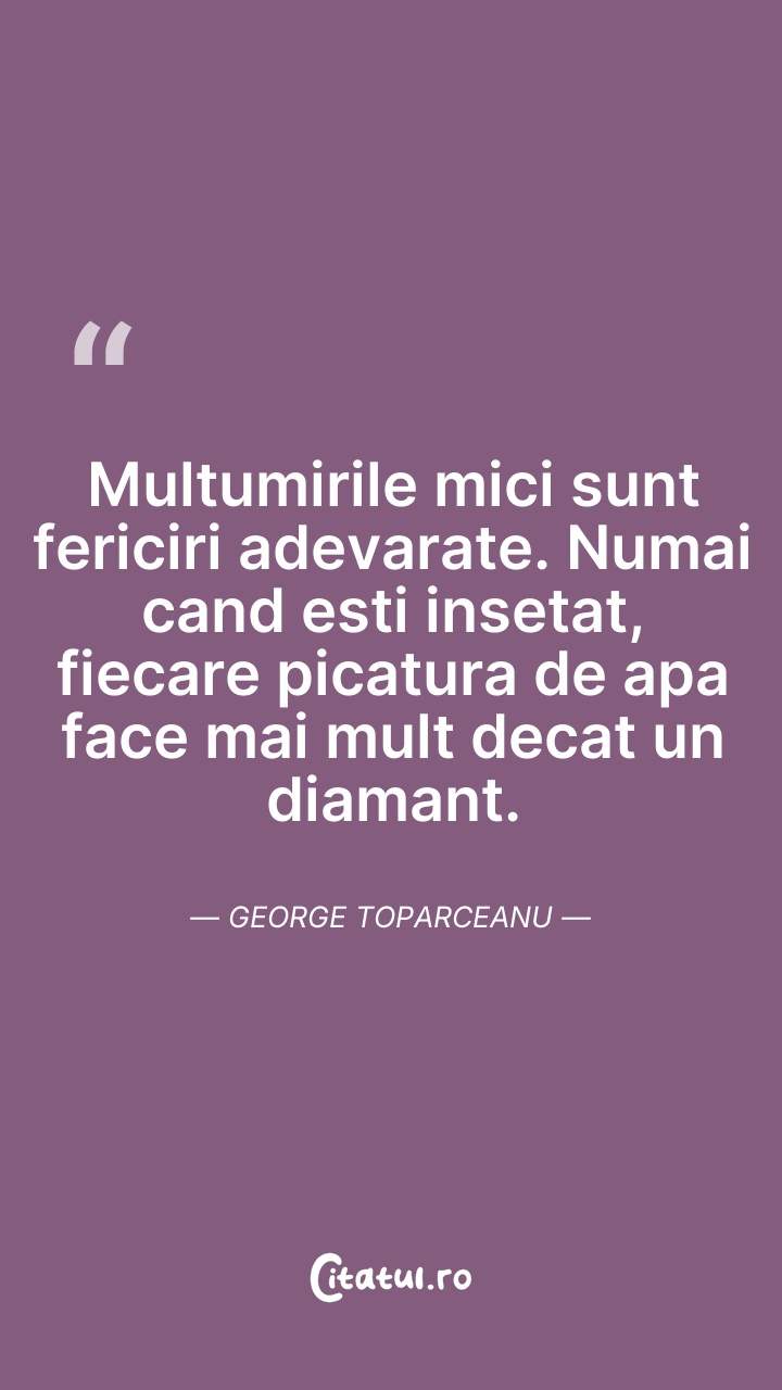 Multumirile mici sunt fericiri adevarate.Numa ... Citește tot citatul >