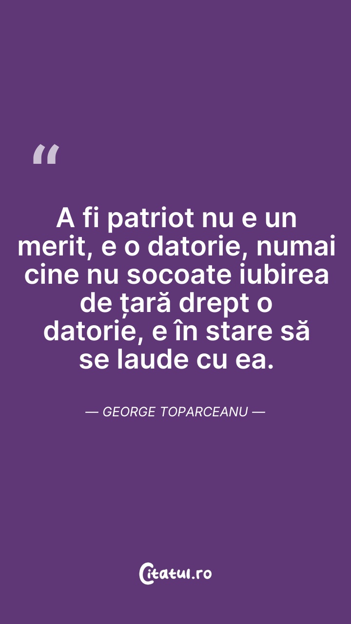 A fi patriot nu e un merit, e o datorie, numa ... Citește tot citatul >