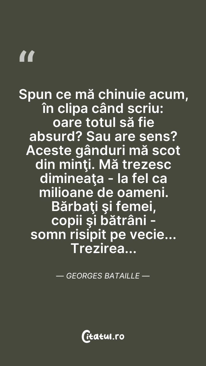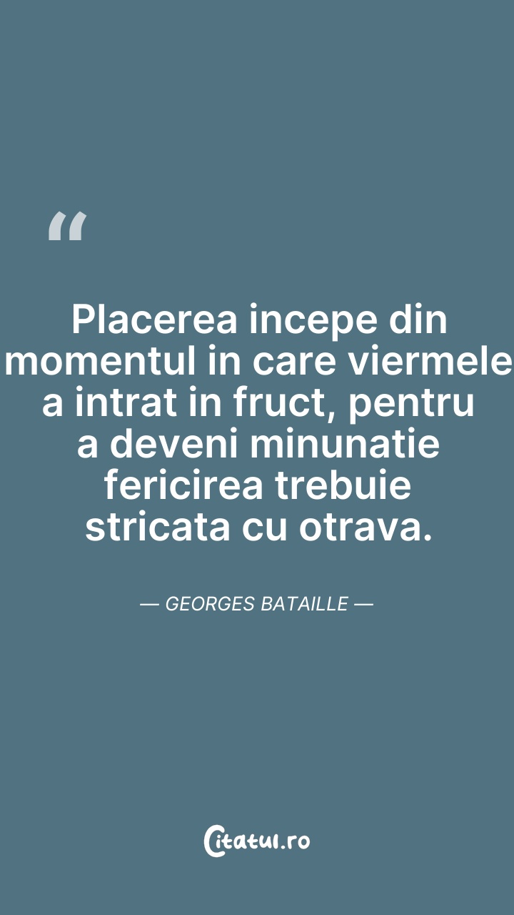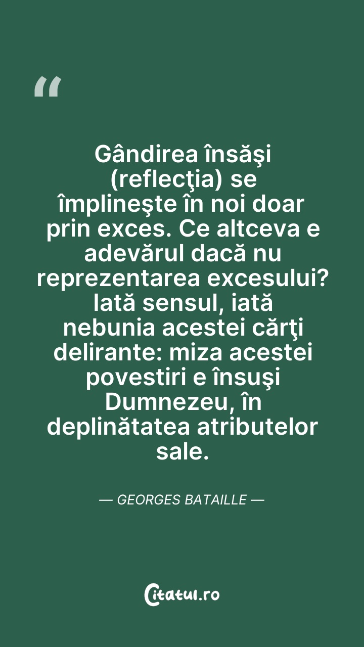 Georges Albert Maurice Victor Bataille a fost un antropolog, bibliotecar, critic literar, eseist, filozof și scriitor francez. Eseurile, romanele și poeziile sale au exprimat fascinația lui pentru erotism, misticism și irațional. După instruirea ca arhivist la Școala de paleografie, cunoscută sub numele École de Chartes din Paris, a lucrat ca bibliotecar și specialist în Evul Mediu la Biblioteca Nașională din Paris, până în anul 1942.