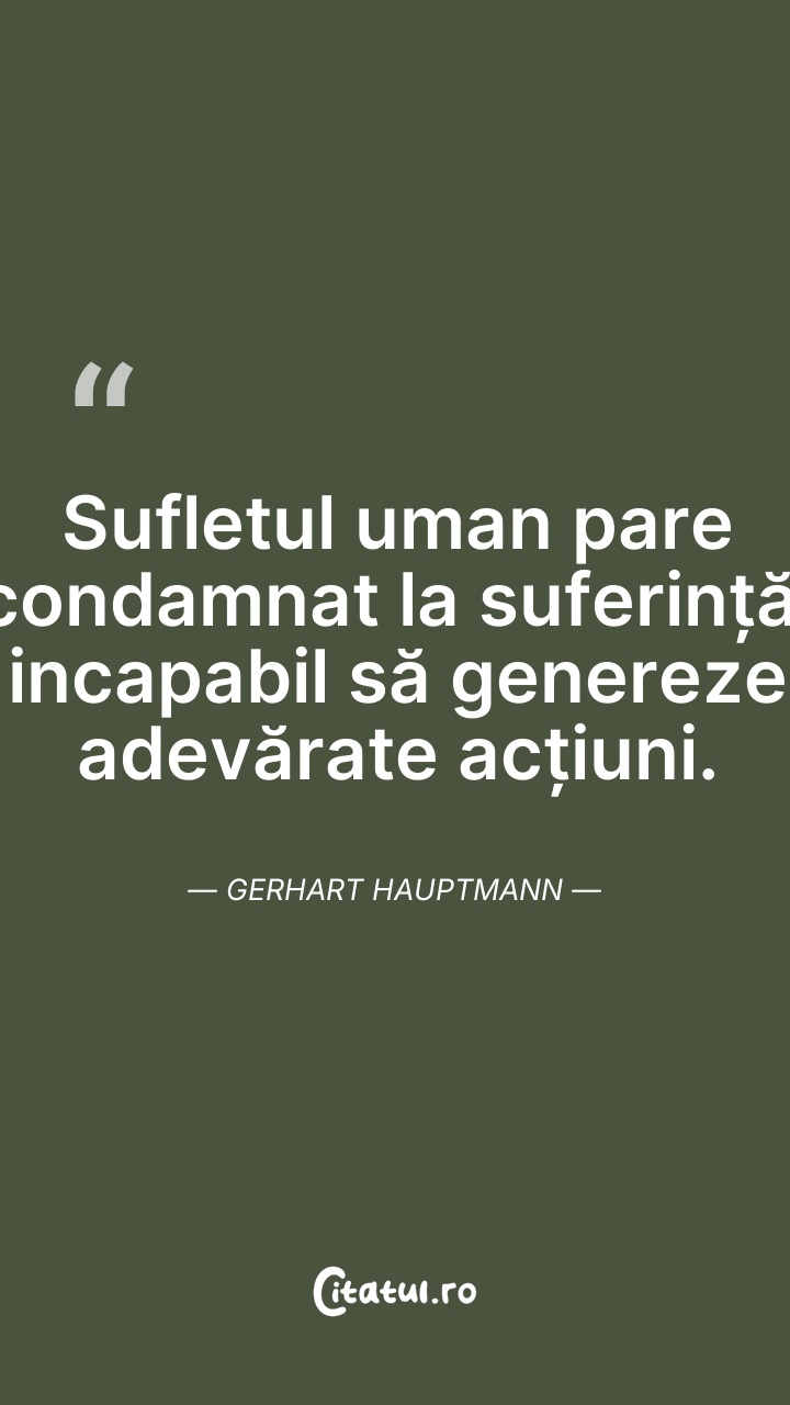 Sufletul uman pare condamnat la suferință, in ... Citește tot citatul >
