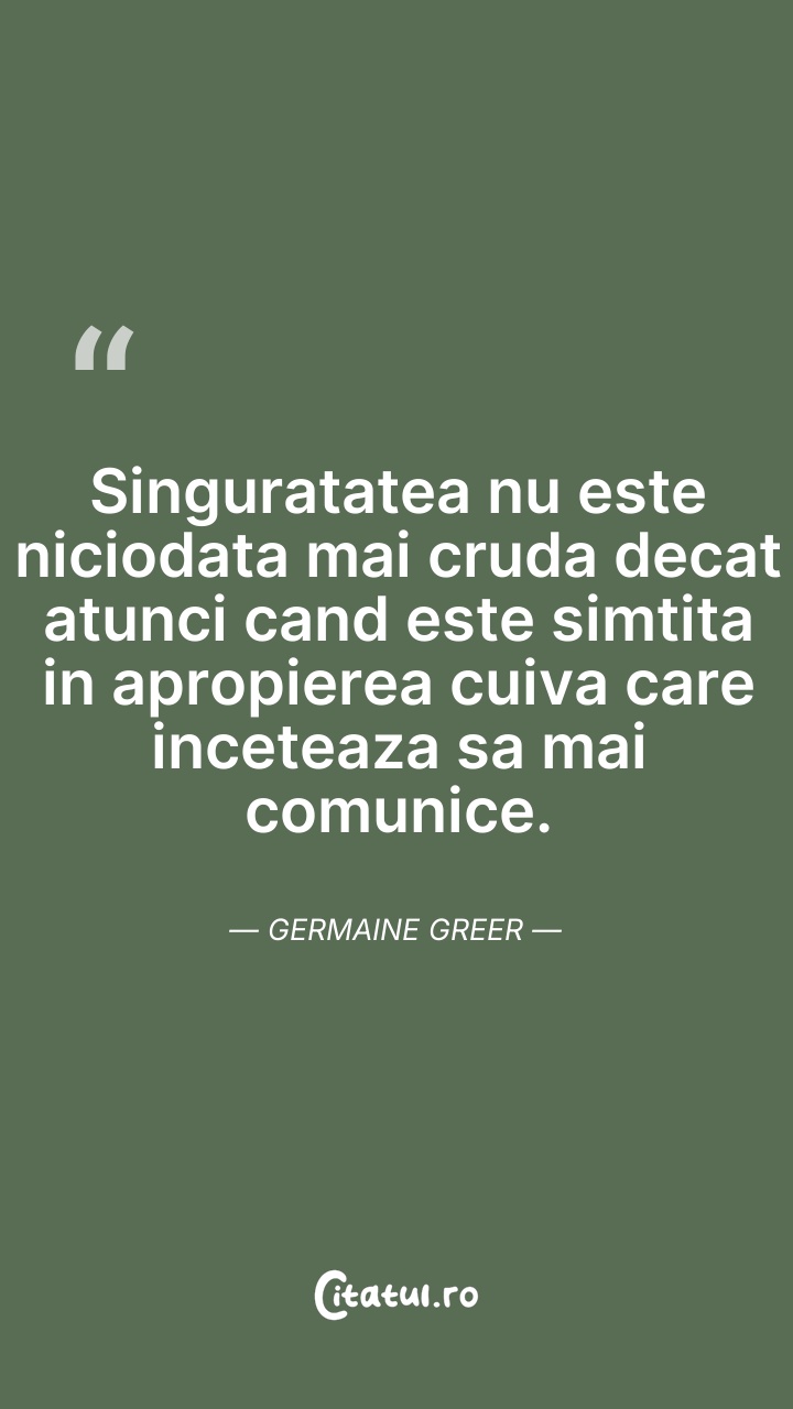 Germaine Greer este o scriitoare australiană, jurnalistă și profesoară de literatură engleză, văzută ca una dintre cele mai importante voci ale feminismului în secolul al XX-lea.