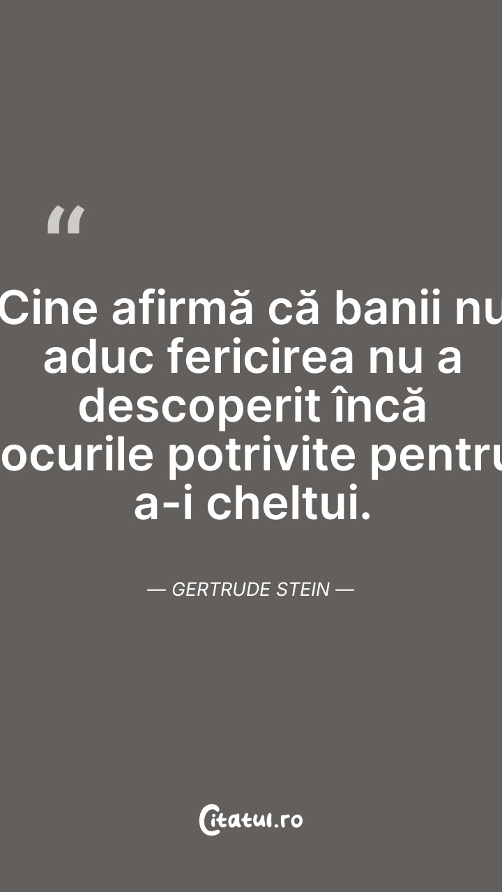 Cine afirmă că banii nu aduc fericirea nu a d ... Citește tot citatul >
