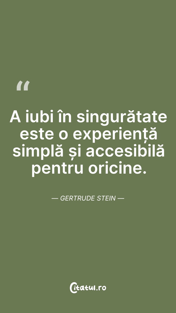Este foarte uşor să iubeşti singur. Gertrude ... Citește tot citatul >