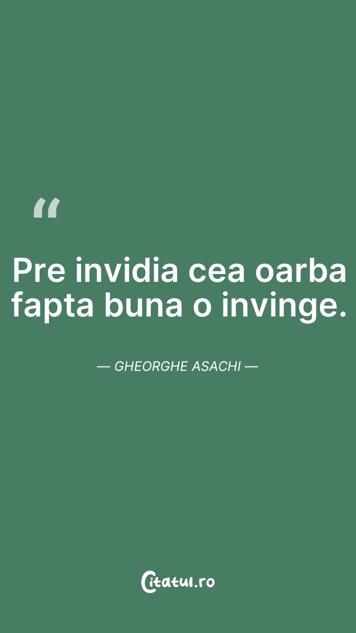 Pre invidia cea oarba fapta buna o invinge. G ... Citește tot citatul >