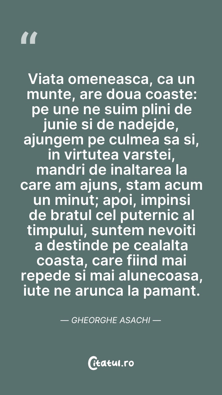Viata omeneasca, ca un munte, are doua coaste ... Citește tot citatul >