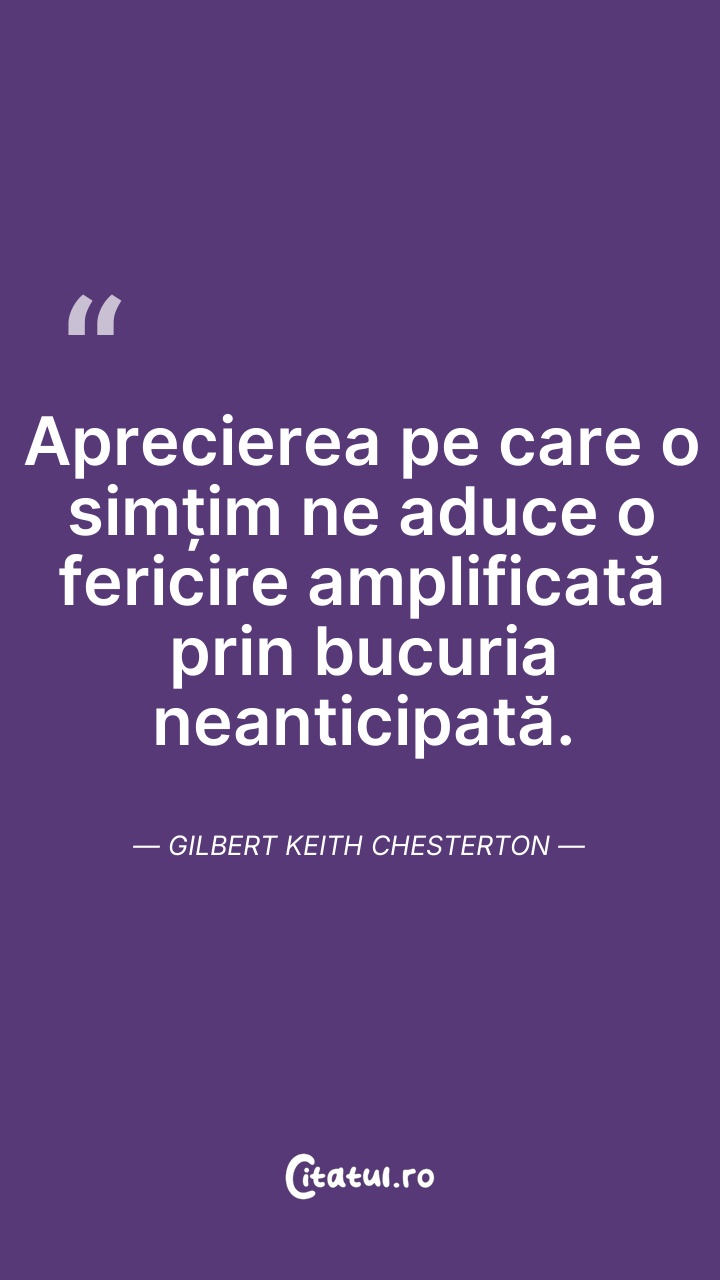 Aprecierea pe care o simțim ne aduce o ferici ... Citește tot citatul >