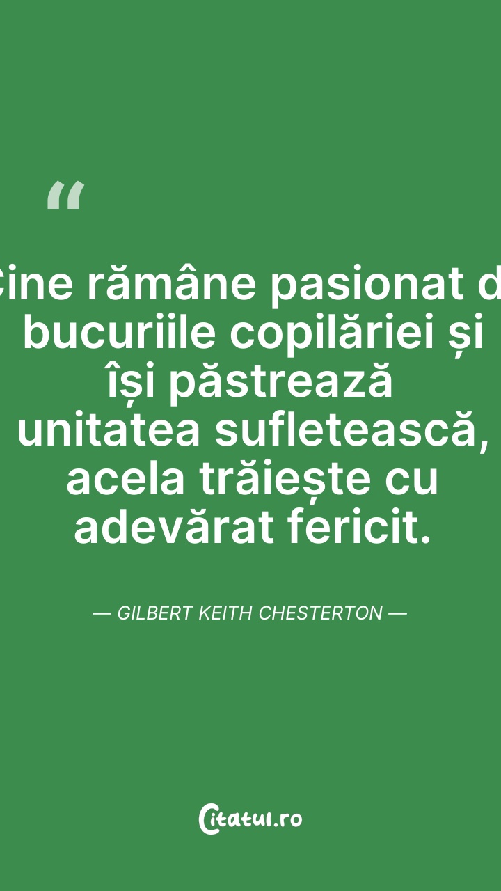 Cine rămâne pasionat de bucuriile copilăriei ... Citește tot citatul >