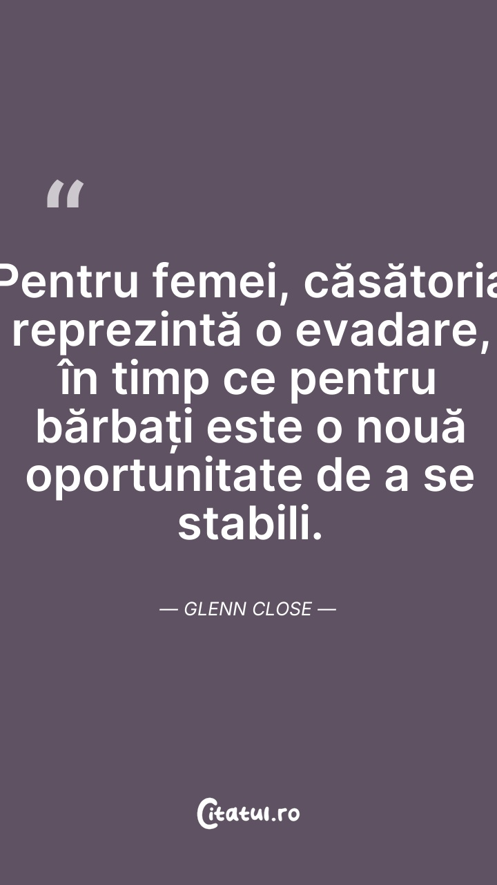 Căsnicia pentru femeie este o ieşire din, iar ... Citește tot citatul >