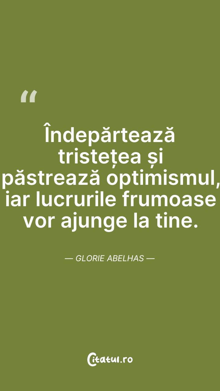 Îndepărtează tristețea și păstrează optimismu ... Citește tot citatul >