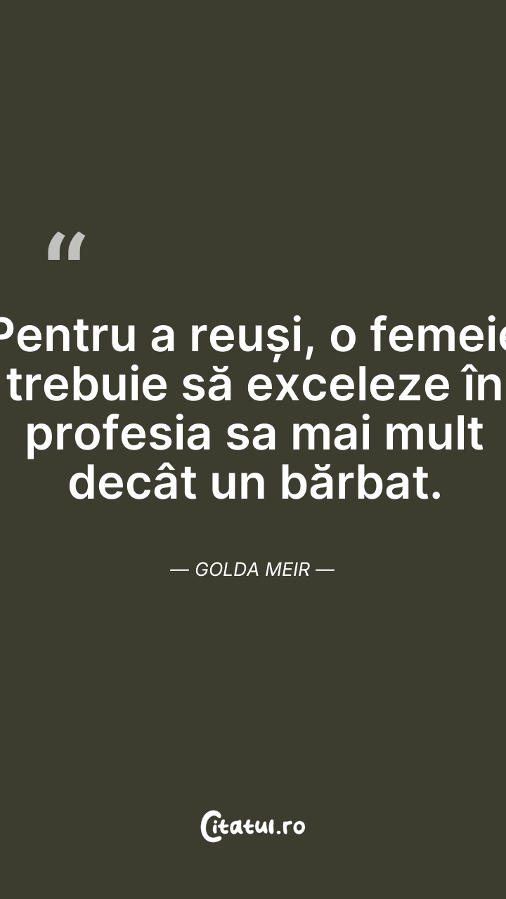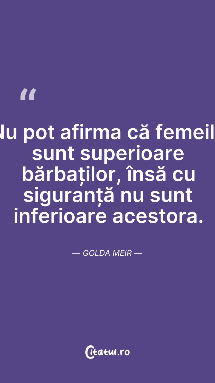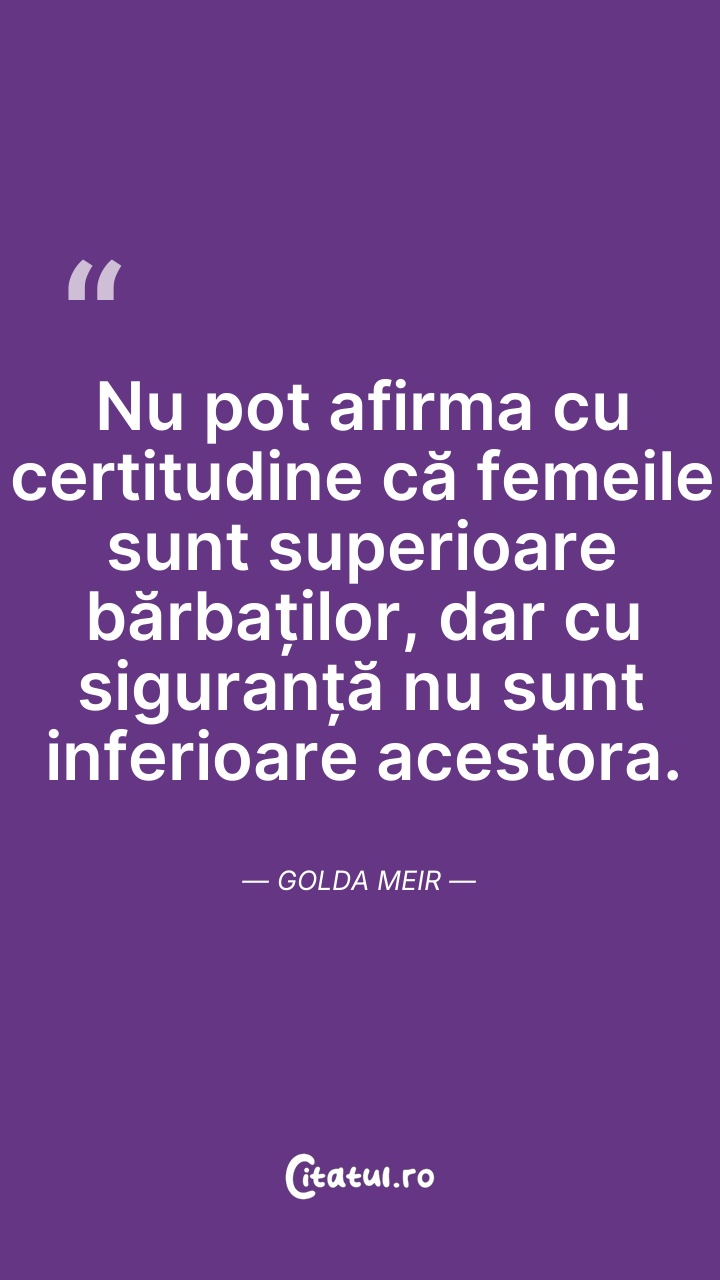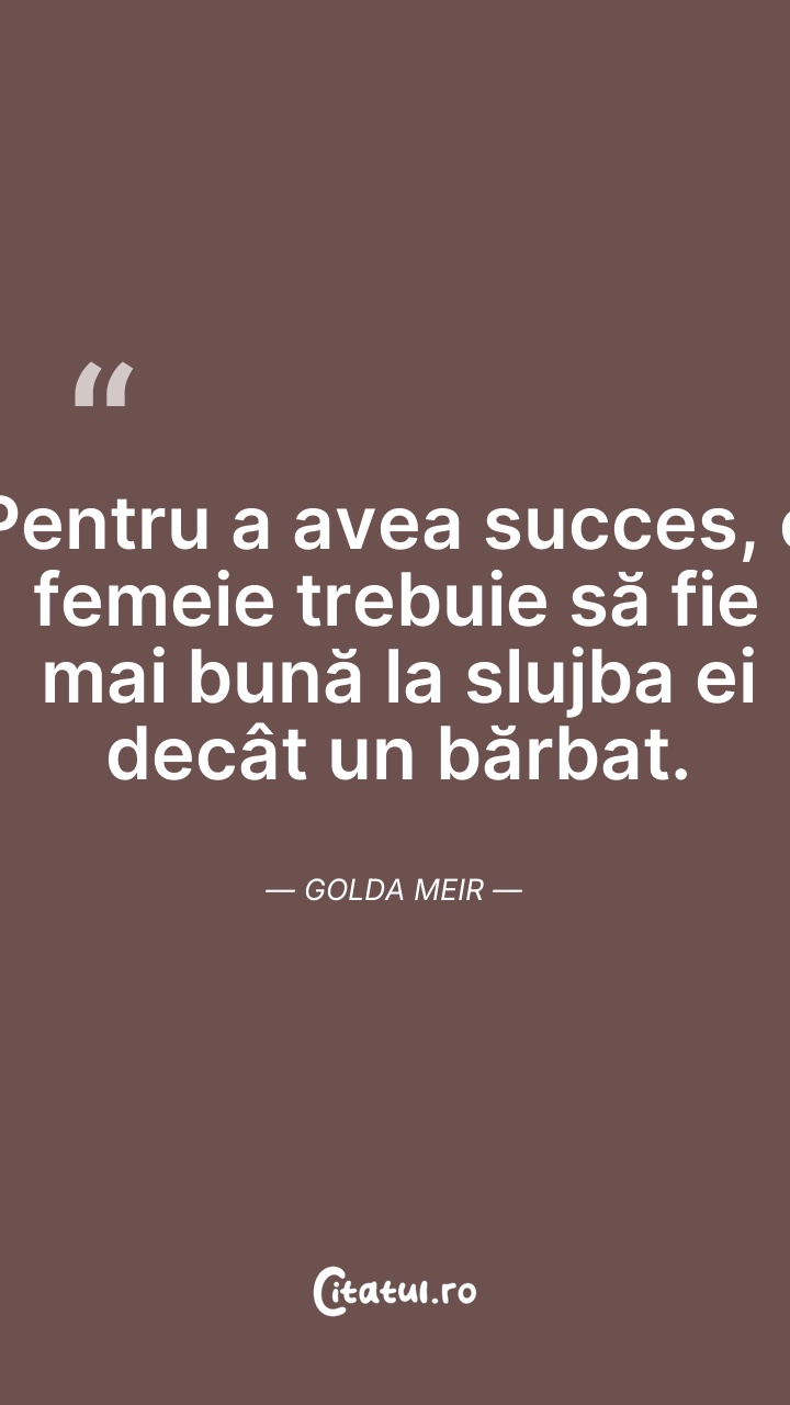 Golda Meir, născută Golda Mabovici, între 1917-1956 Golda Meyerson a fost politiciană social-democrată israeliană, al patrulea prim-ministru al statului Israel. Meir a fost aleasă prim ministru al Israelului la 17 martie 1969, după ce servise ca ministru de externe. A fost prima femeie din Israel și a treia din lume care a ocupat funcția de șefă de guvern.