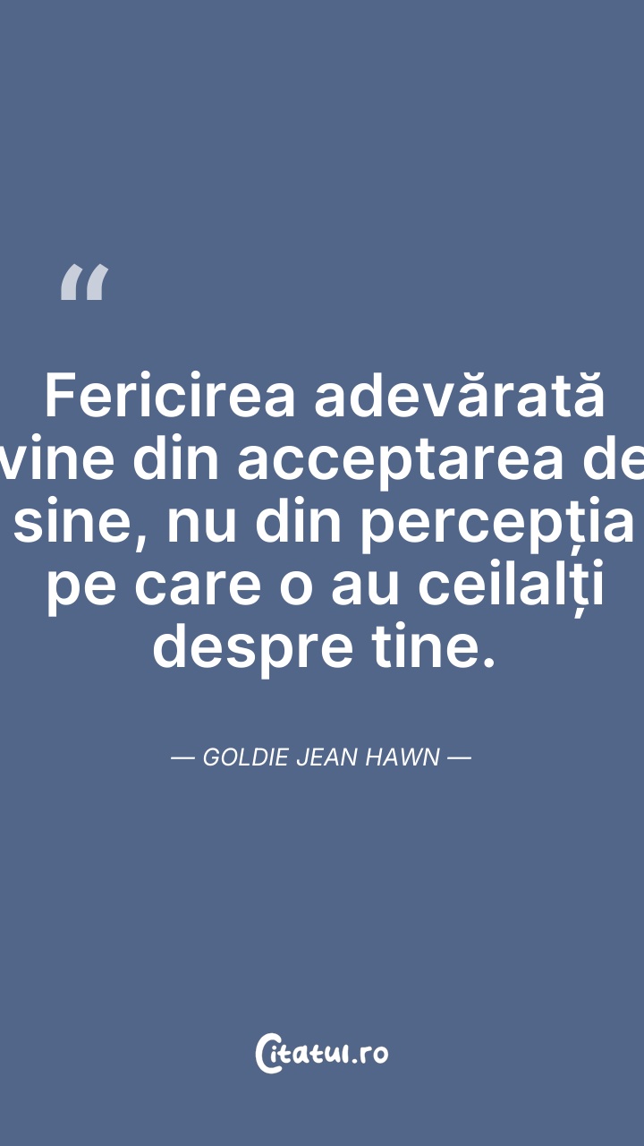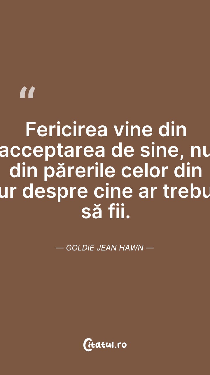 Fericirea vine din acceptarea de sine, nu din ... Citește tot citatul >