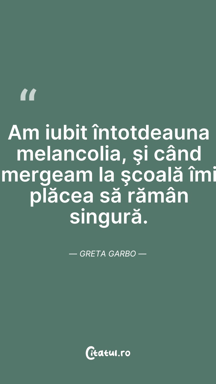 Am iubit întotdeauna melancolia, şi când merg ... Citește tot citatul >