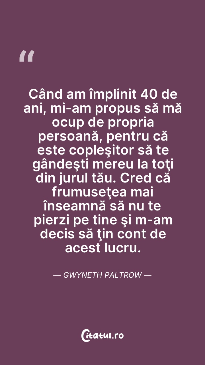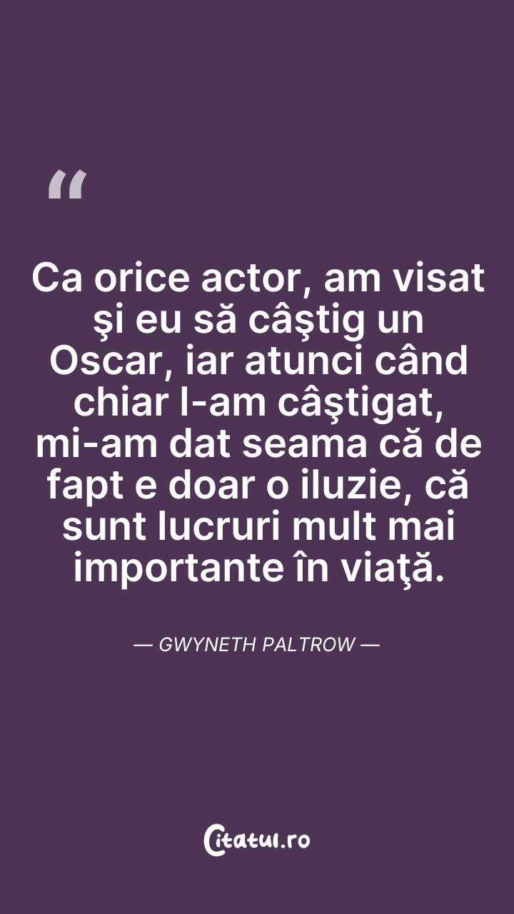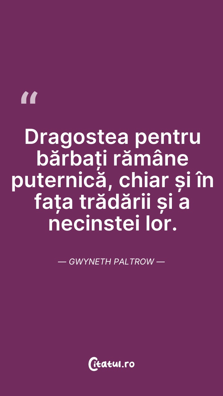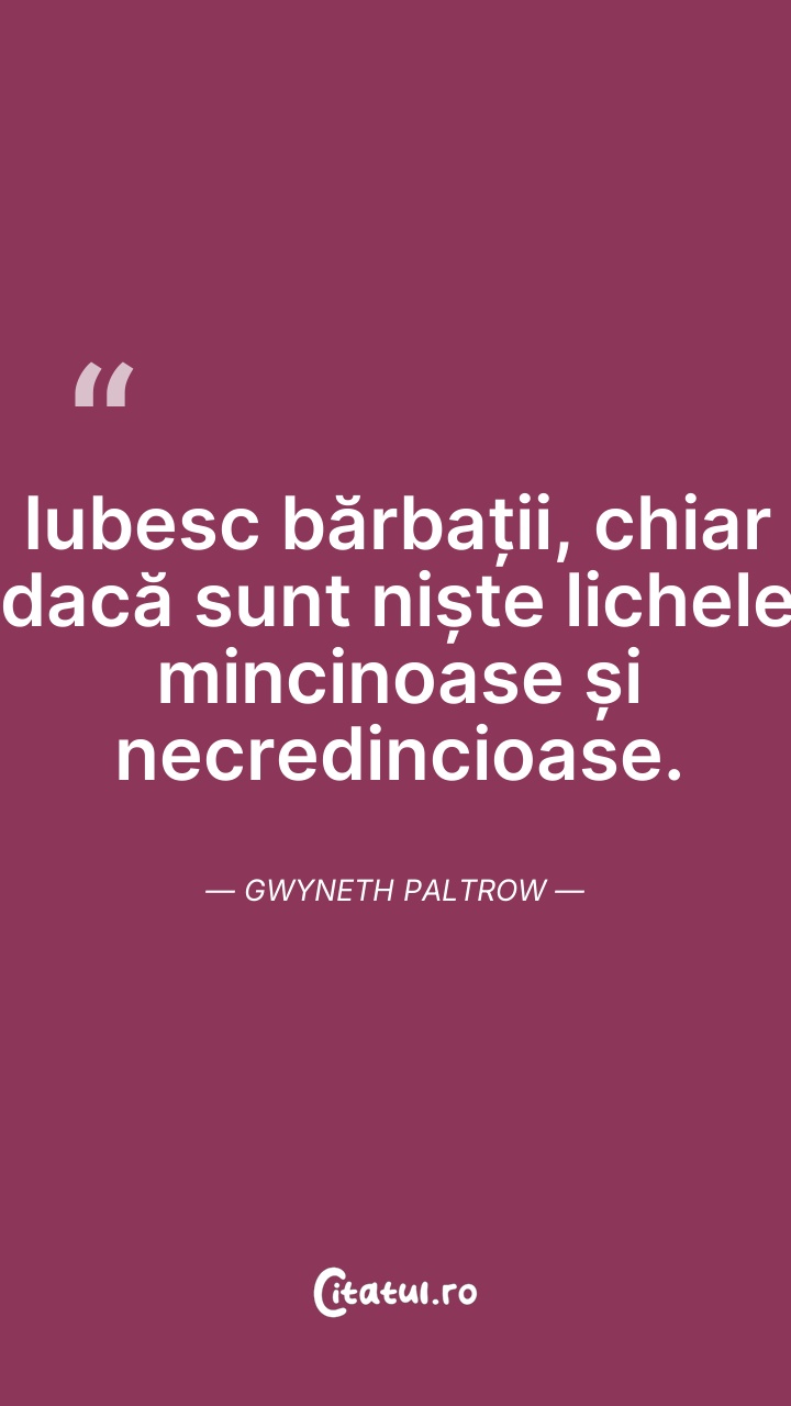 Gwyneth Kate Paltrow este o actriță, cântăreață și autoare americană, de film laureată a premiului Oscar pentru „Cea mai bună actriță” în 1999. A fost căsătorită cu Chris Martin, vocalistul trupei Coldplay, de care a divorțat în 2016, cuplul având doi copii împreună.