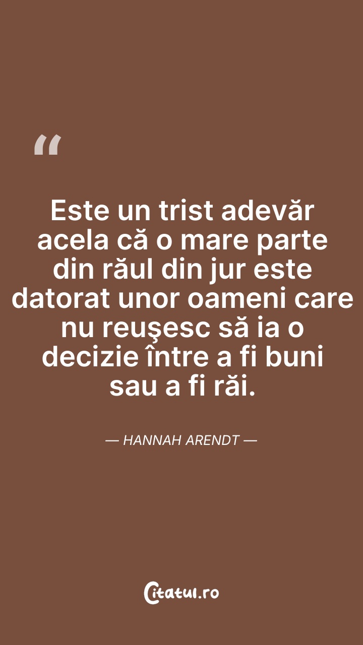 Hannah Arendt a fost o evreică-germană, teoreticiană politică, filosoafă, deși ea nu s-a considerat niciodată ca atare și, una dintre figurile marcante ale gândirii socio-politice contemporane. Hannah Arendt a abordat în lucrările sale cele două mari și dificile teme ale epocii postbelice: totalitarismul și antisemitismul.