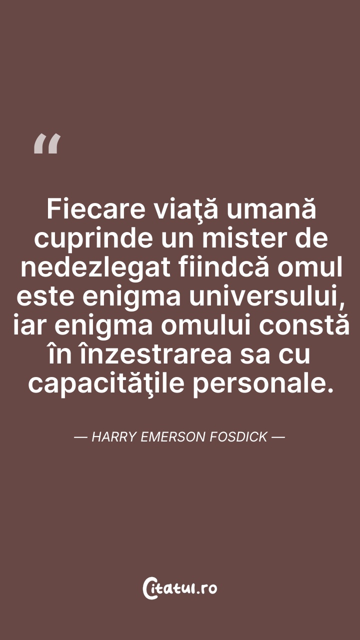 Fiecare viaţă umană cuprinde un mister de ned ... Citește tot citatul >