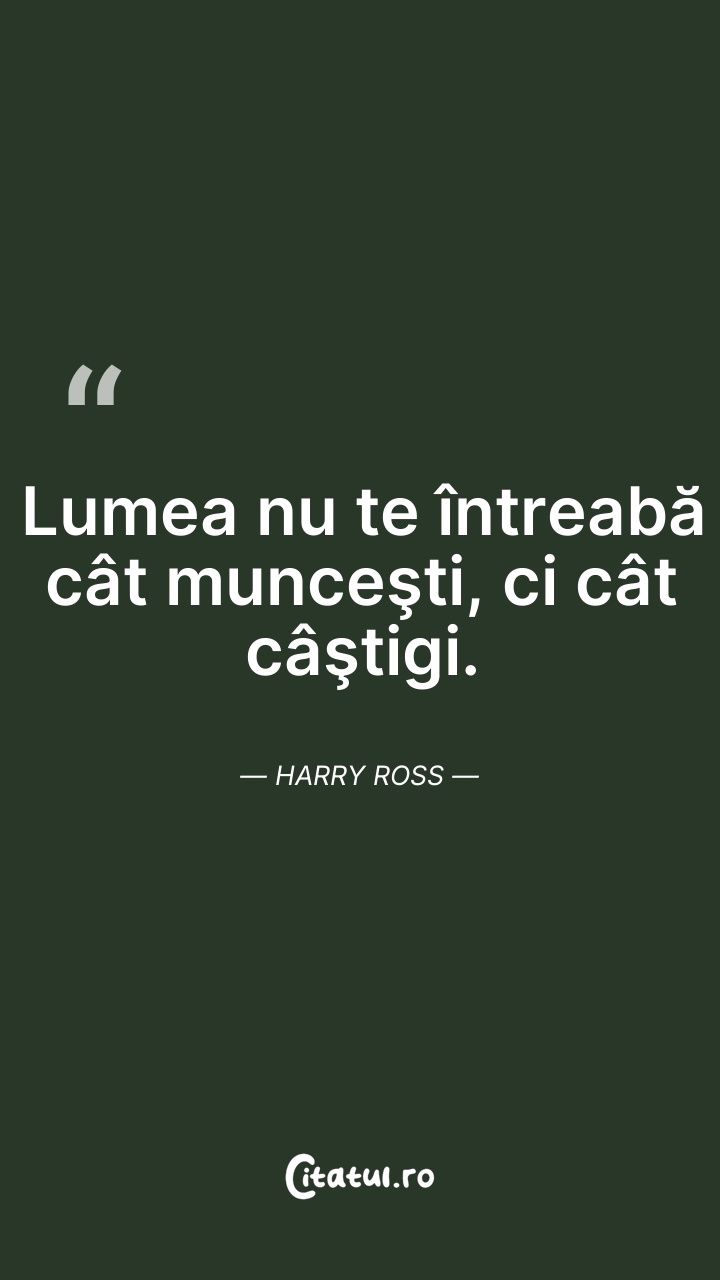 Lumea nu te întreabă cât munceşti, ci cât câş ... Citește tot citatul >