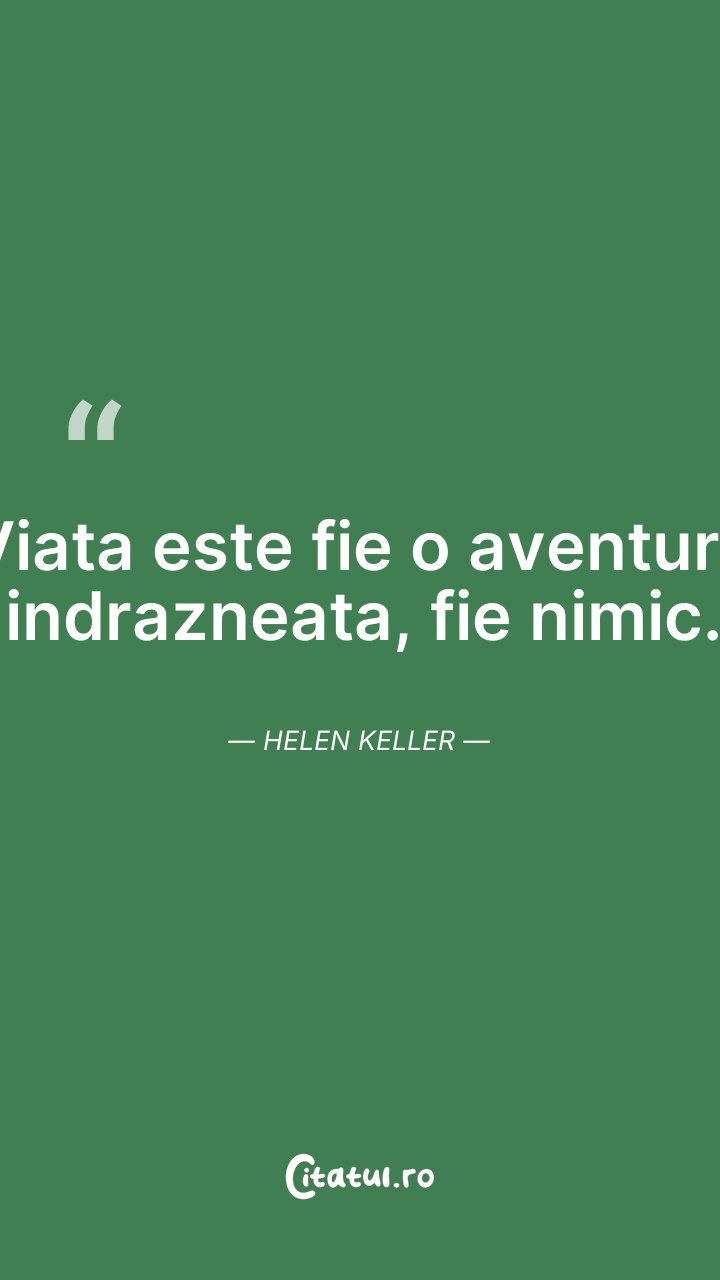 Viata este fie o aventura indrazneata, fie ni ... Citește tot citatul >