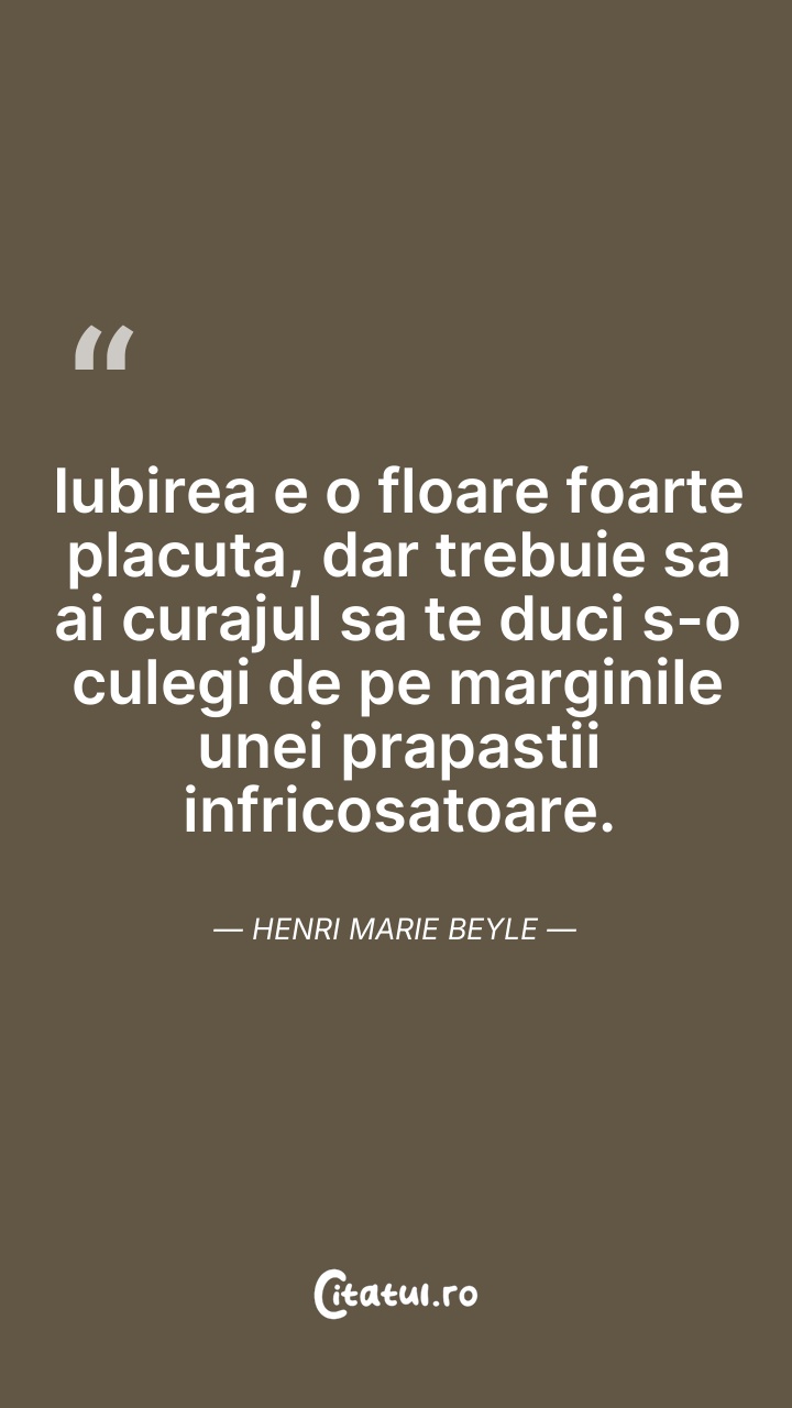 Iubirea e o floare foarte placuta, dar trebui ... Citește tot citatul >