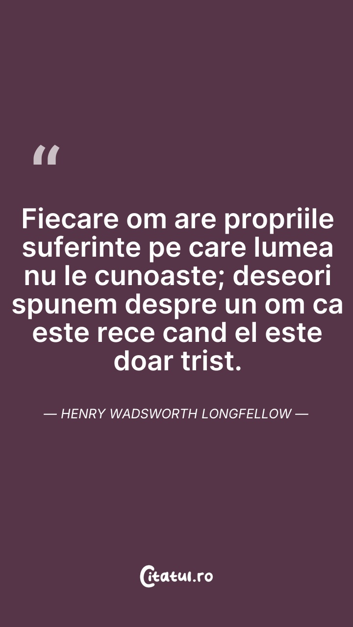 Fiecare om are propriile suferinte pe care lu ... Citește tot citatul >