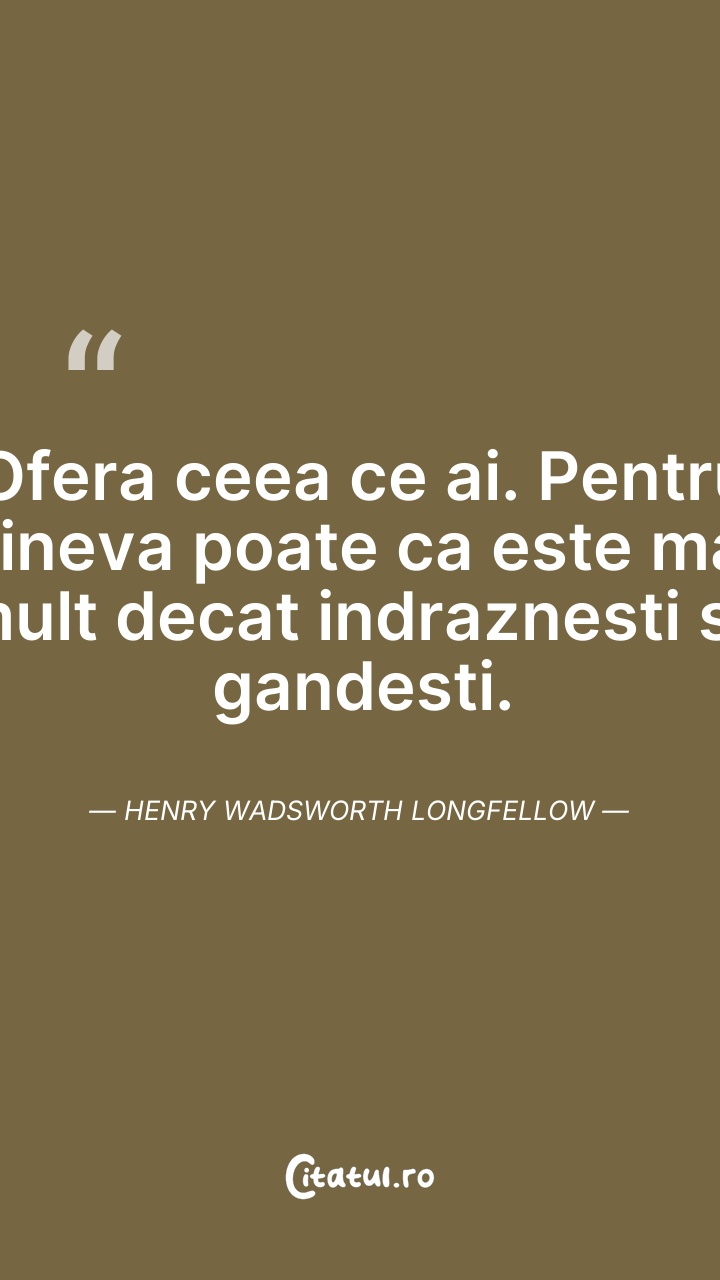 Ofera ceea ce ai. Pentru cineva poate ca este ... Citește tot citatul >