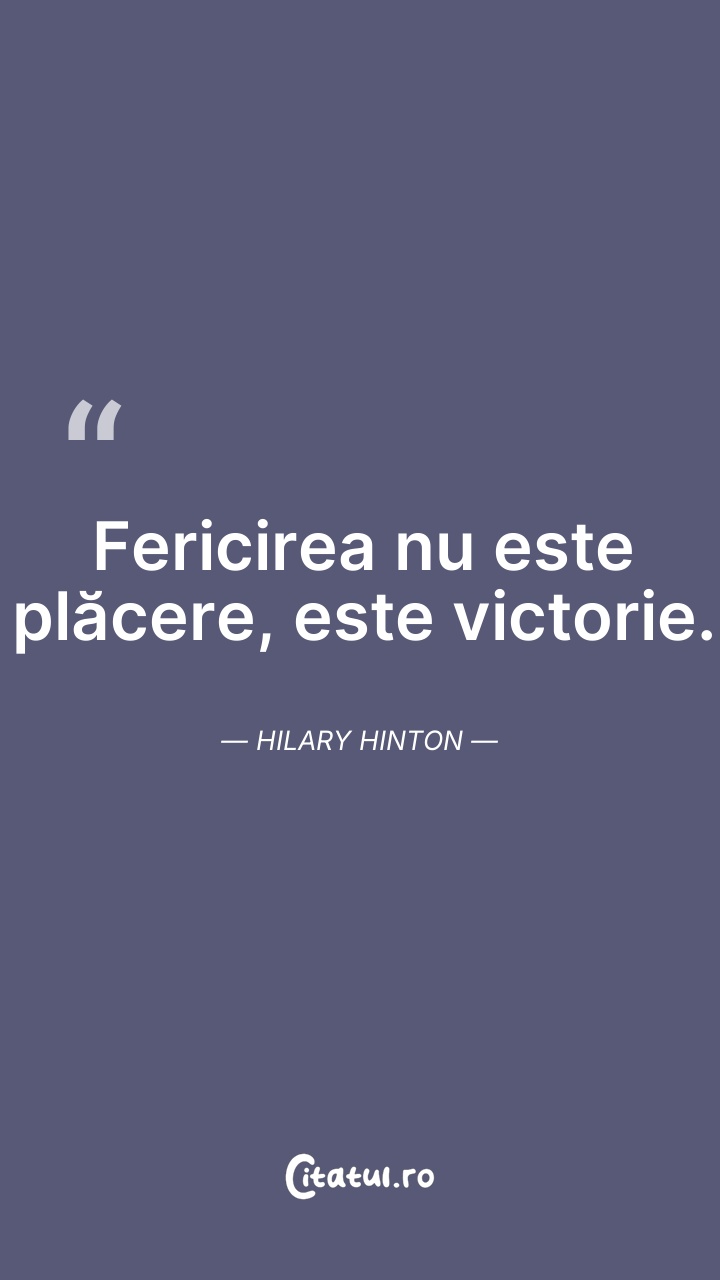 Fericirea nu este plăcere, este victorie. Hil ... Citește tot citatul >
