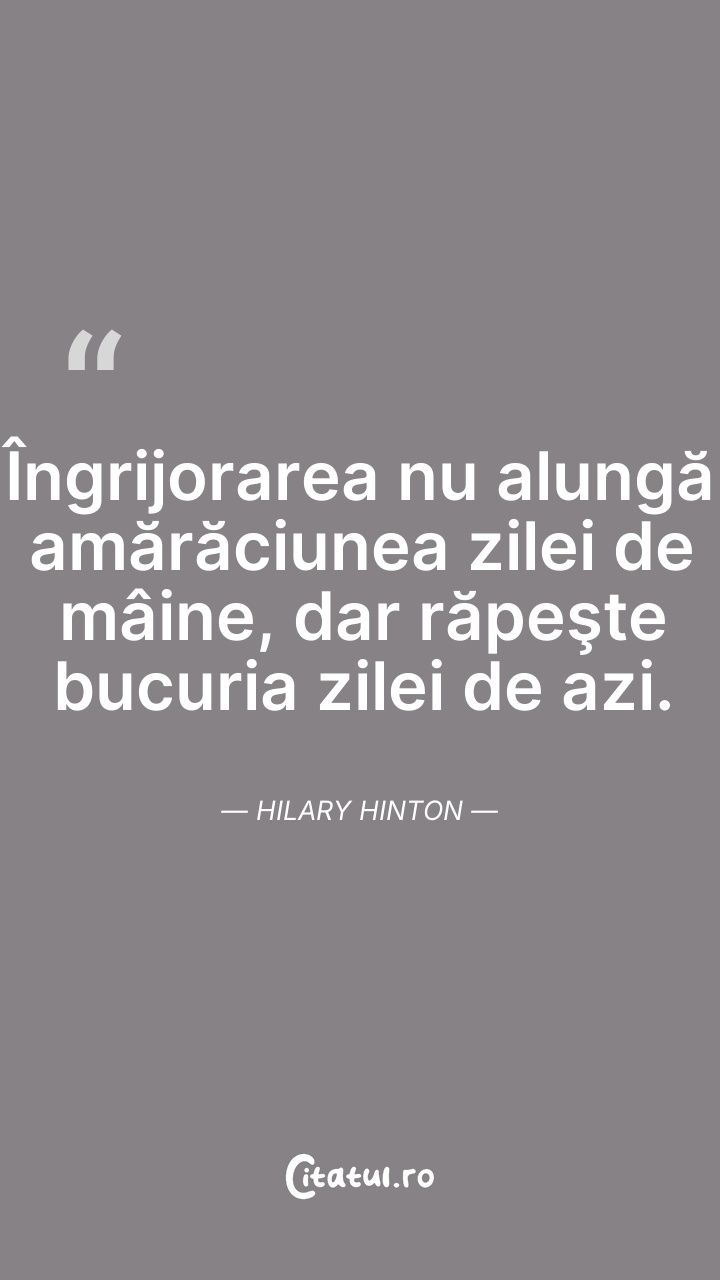 Îngrijorarea nu alungă amărăciunea zilei de m ... Citește tot citatul >