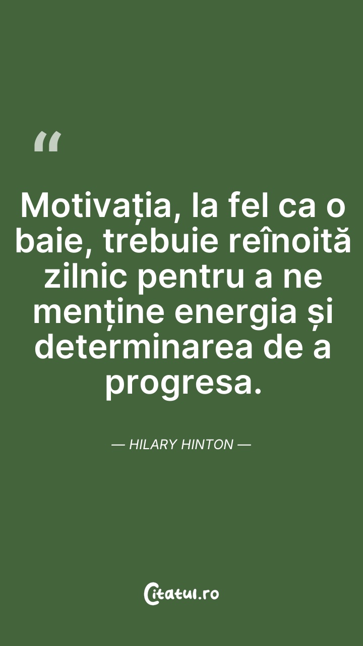 Motivația, la fel ca o baie, trebuie reînoită ... Citește tot citatul >