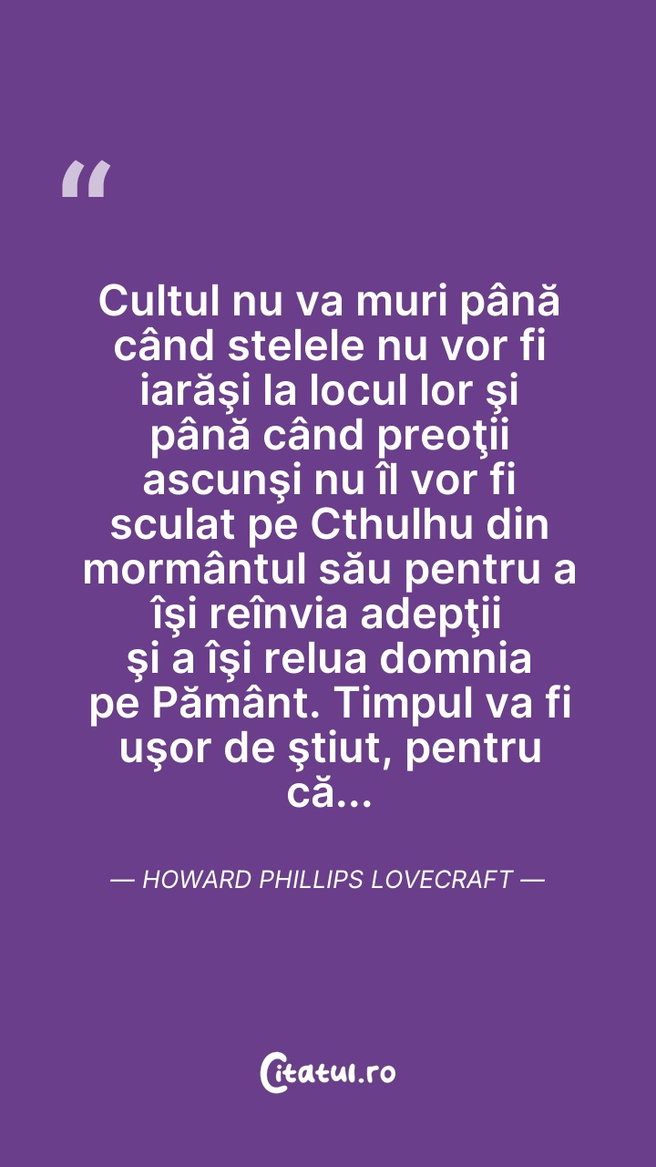 Cultul nu va muri până când stelele nu vor fi ... Citește tot citatul >
