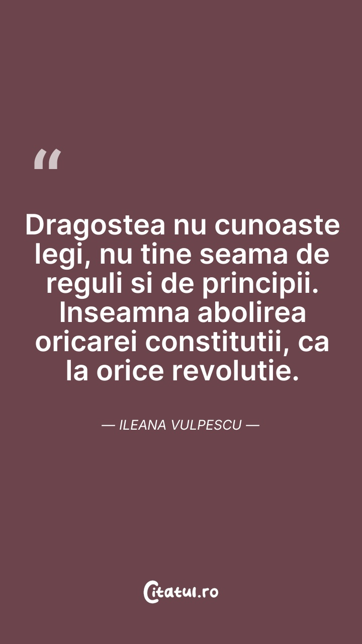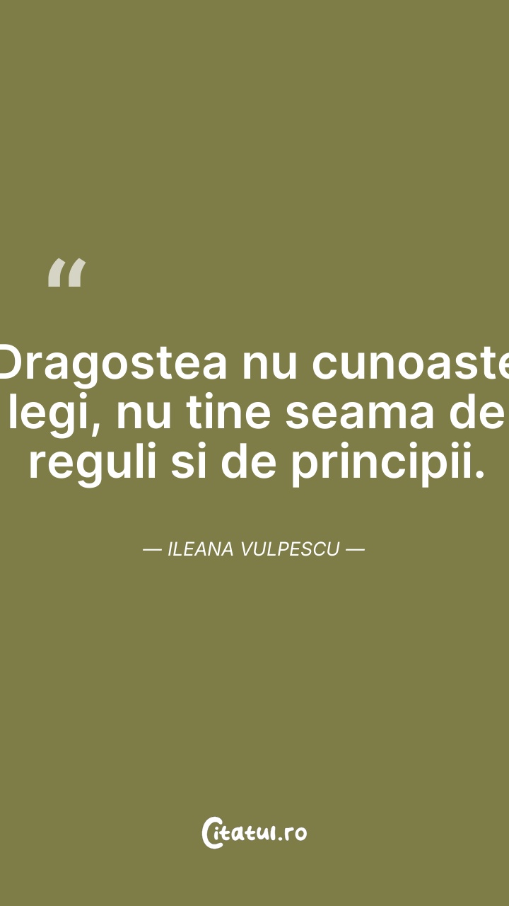 Dragostea nu cunoaste legi, nu tine seama de ... Citește tot citatul >