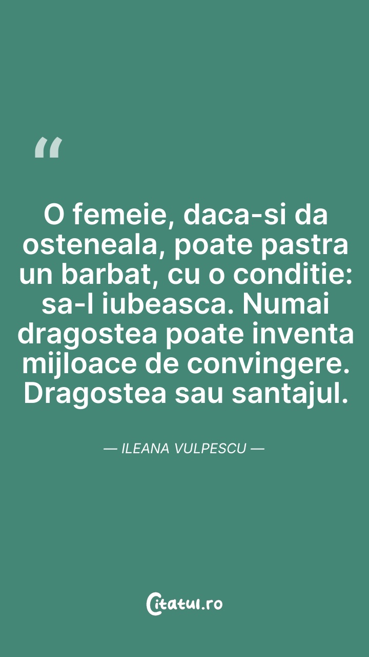 O femeie, daca-si da osteneala, poate pastra ... Citește tot citatul >