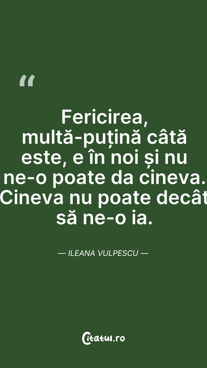 Fericirea, multă-puțină câtă este, e în noi ș ... Citește tot citatul >