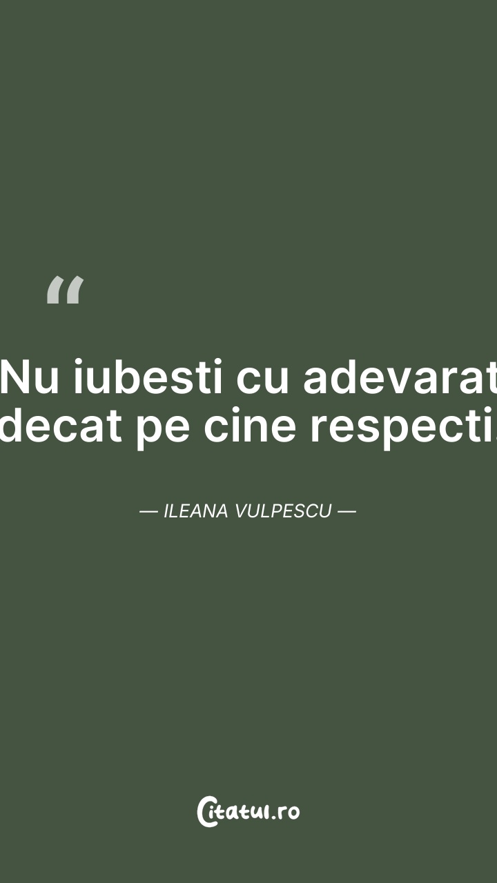 Nu iubesti cu adevarat decat pe cine respecti ... Citește tot citatul >