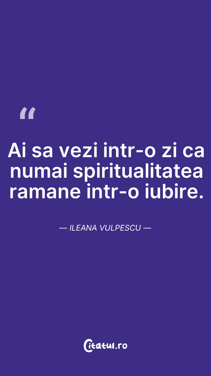 Ai sa vezi intr-o zi ca numai spiritualitatea ... Citește tot citatul >