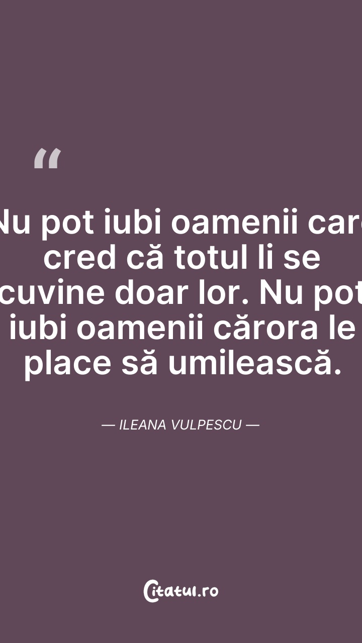 Nu pot iubi oamenii care cred că totul li se ... Citește tot citatul >