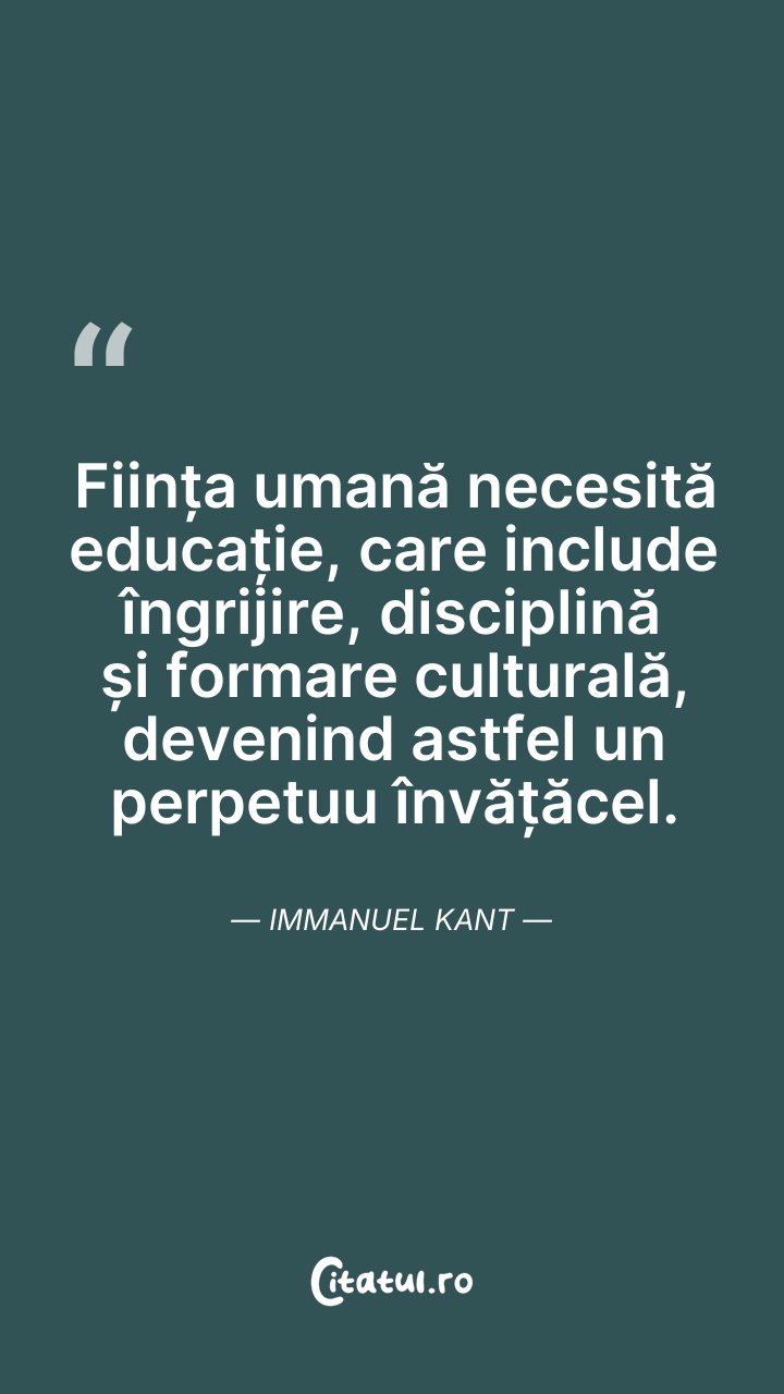 Immanuel Kant a fost un filosof german, unul din cei mai mari gânditori din perioada iluminismului în Germania. Kant este socotit unul din cei mai influenți filosofi din istoria culturii apusene. Prin fundamentarea idealismului critic, a exercitat o enormă influență asupra dezvoltării filosofiei în timpurile moderne. În special Fichte, Schelling și Hegel și-au dezvoltat sistemele filosofice pornind de la moștenirea lui Kant. Cei mai mulți scriitori și artiști din vremea lui au fost influențați de ideile sale în domeniul esteticii, operele lui Goethe, Schiller sau Kleist neputând fi înțelese fără referința la concepțiile filosofice dezvoltate de Kant.