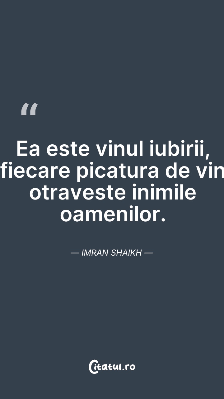 Ea este vinul iubirii, fiecare picatura de vi ... Citește tot citatul >