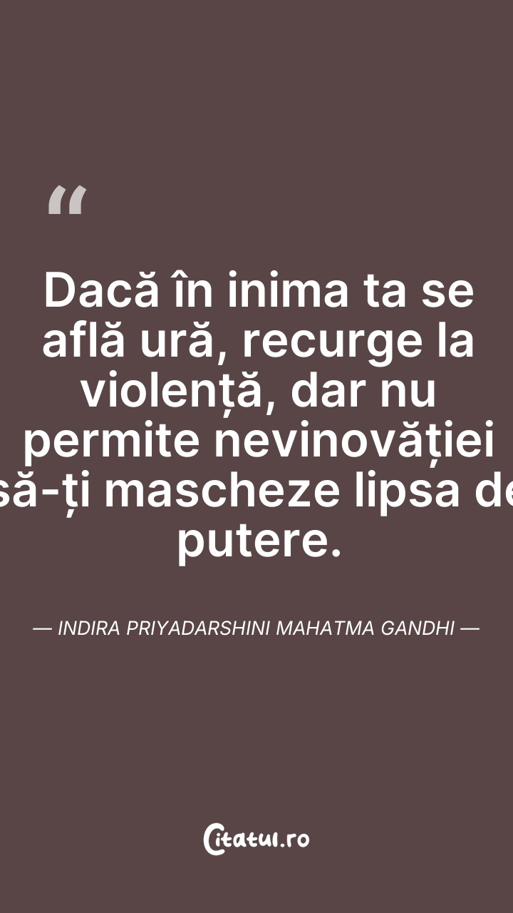 Foloseşte violenţa dacă ai ură în suflet, dar ... Citește tot citatul >